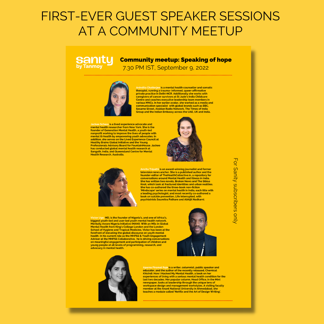 - I am particularly proud to have onboarded Sanity's first intern β Devika Rawat, who taught me a lot about the state of psychology education and wrote a brilliant story on an unexplored topic.