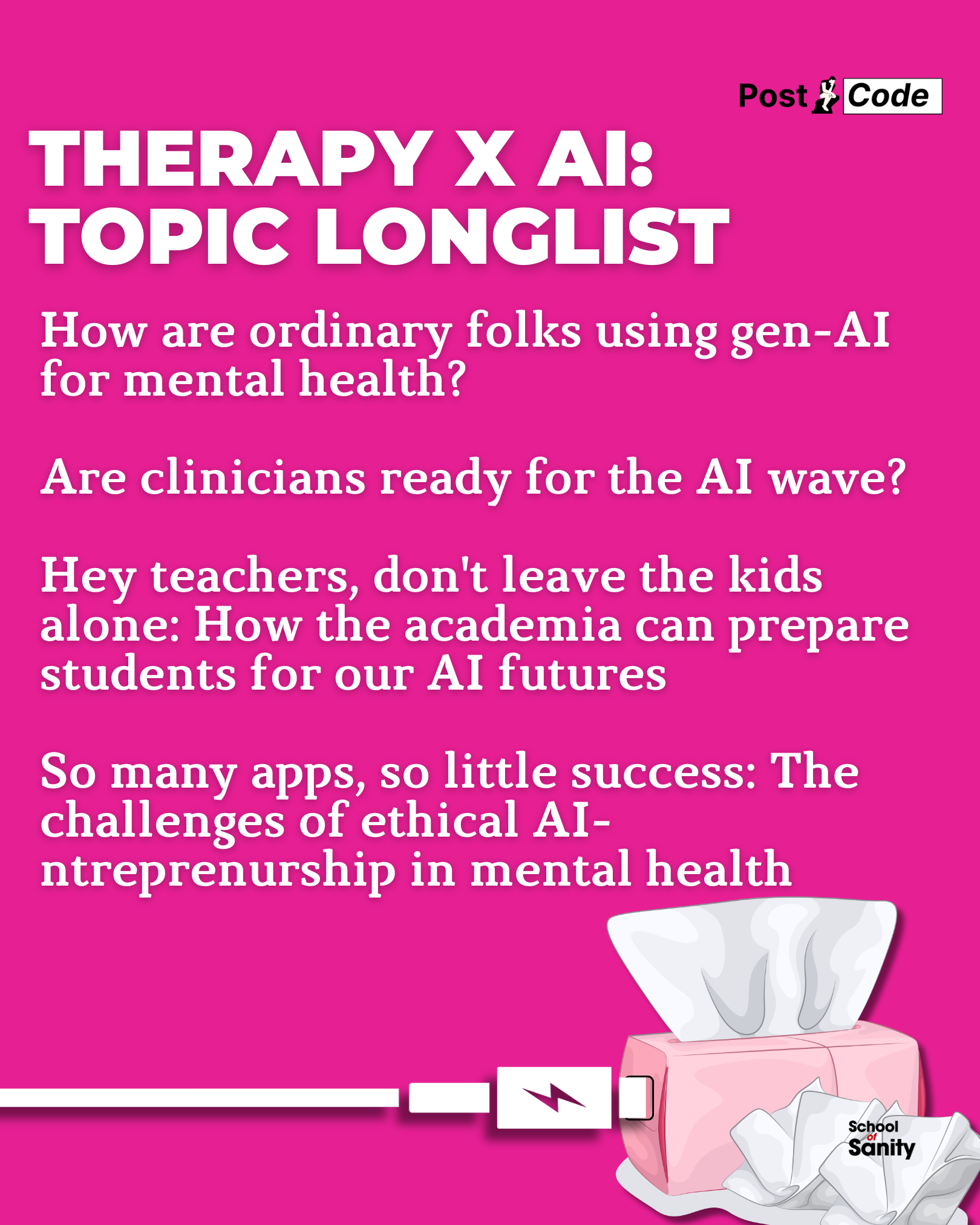 WHAT: A first-of-its-kind online interdisciplinary learning forum dedicated to the intersection of therapy and AI